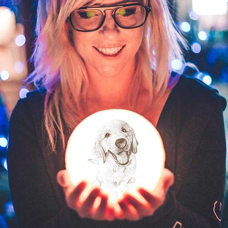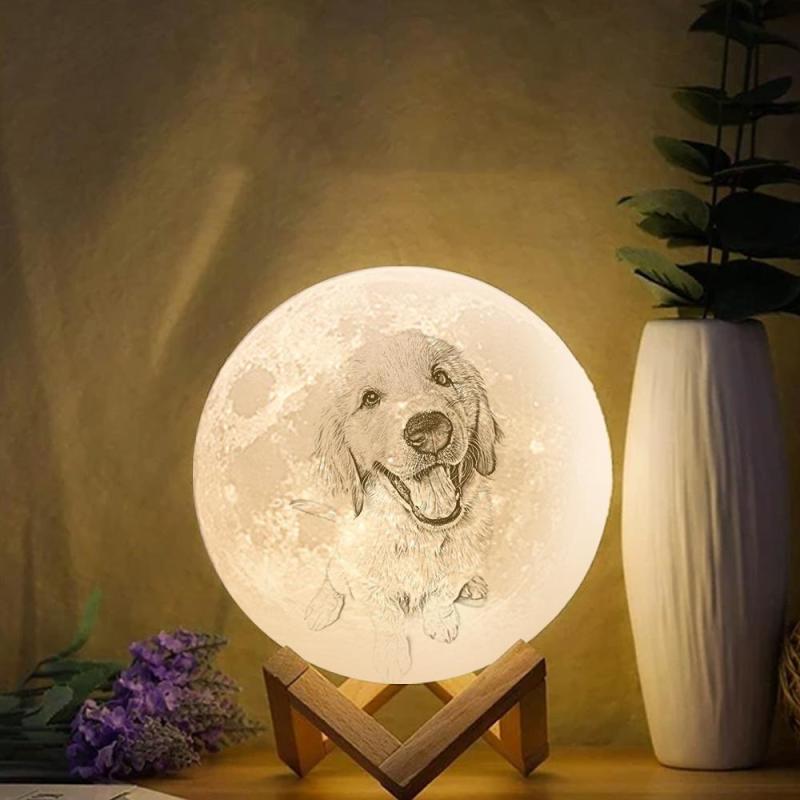 Foto Gravur 3D Druck Mond Lampe | Berühren Sie 2 Farben | Schönes Haustier