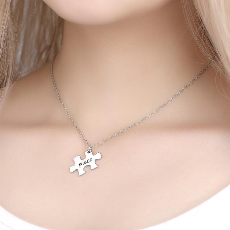 Kundenspezifisch Graviertes Liebespaar Schlüsselanhänger und Halskette Set- Puzzle