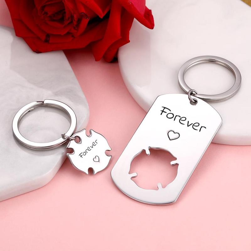 Kundenspezifisch Graviertes Liebespaar Schlüsselanhänger Set - Kleeblatt
