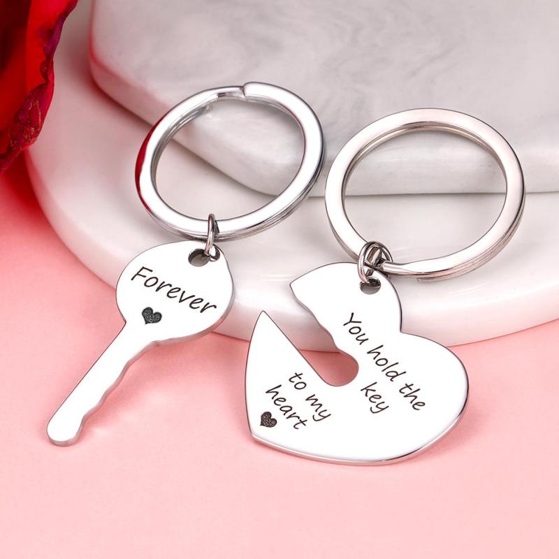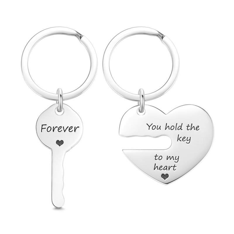 Kundenspezifisch Graviertes Liebespaar Schlüsselanhänger Set - Halten Sie den Schlüssel zu meinem Herzen