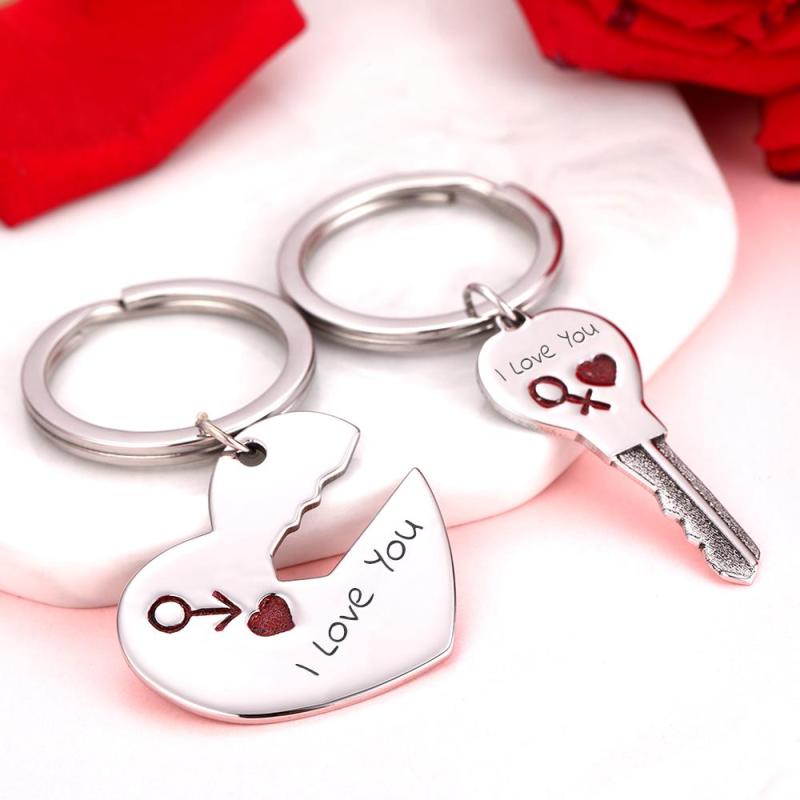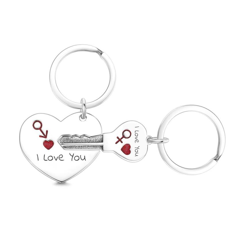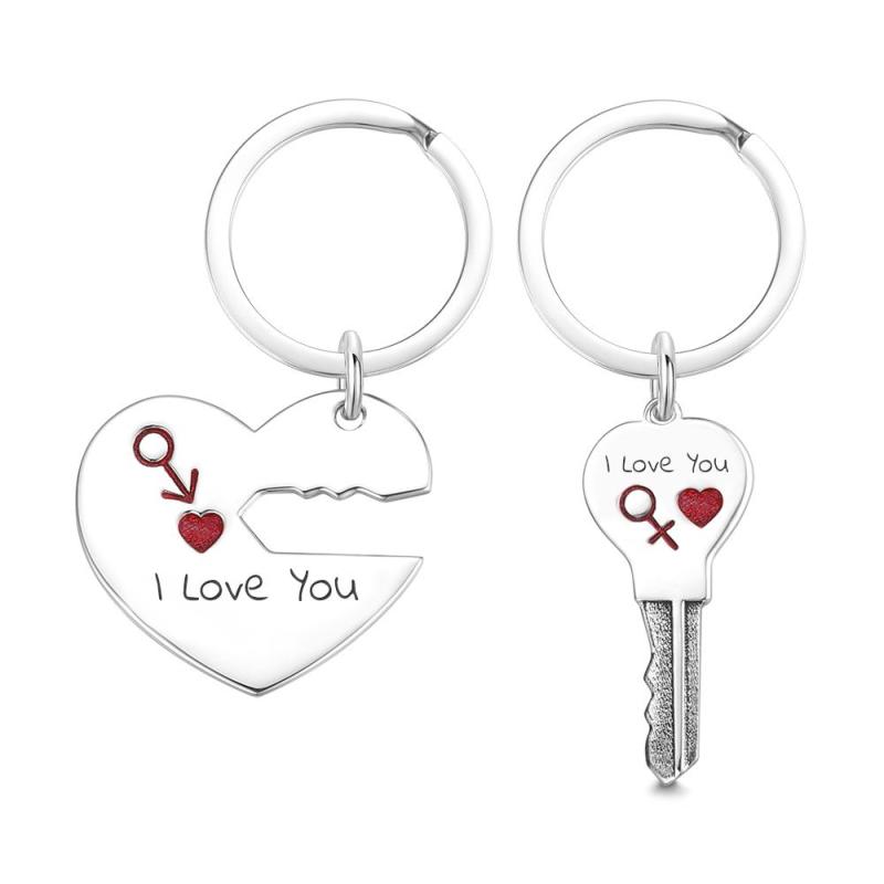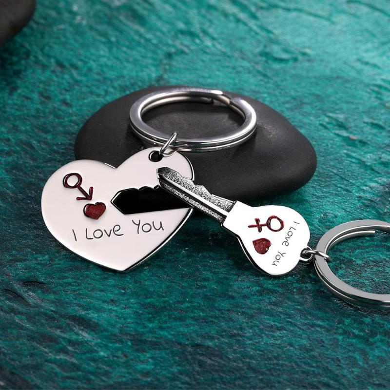 Kundenspezifisch Graviertes Liebespaar Schlüsselanhänger Set - Herzschloss und Schlüssel