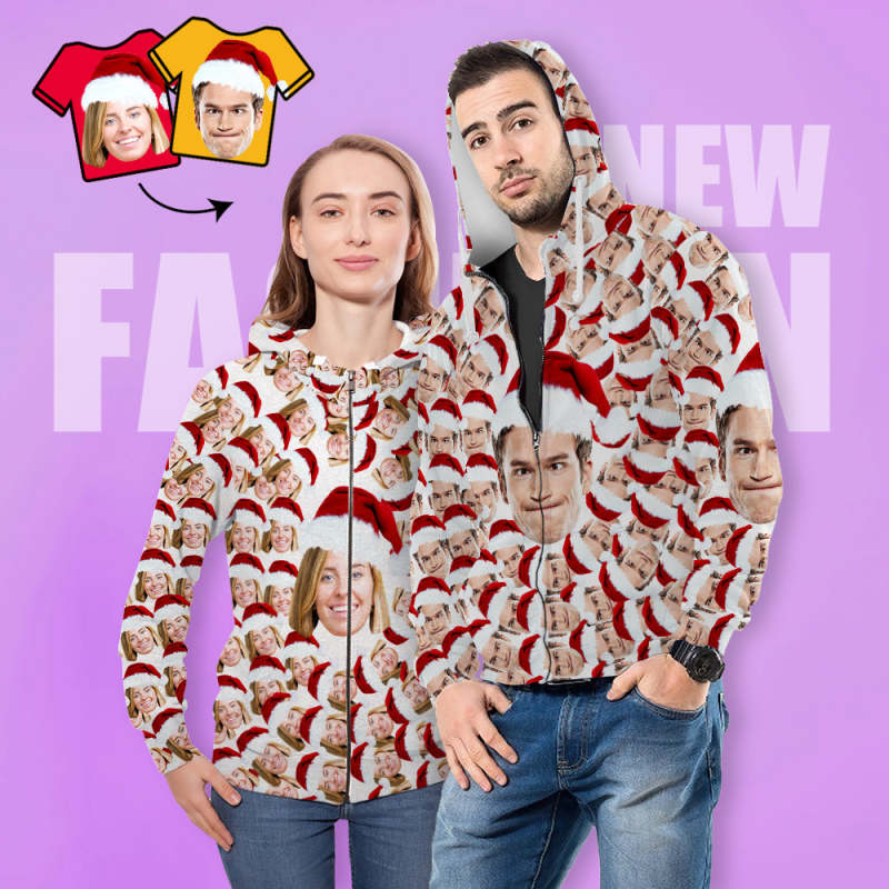 Weihnachtsgeschenk: Personalisierbarer „mein Gesicht"-paar-hoodie Mit Foto-reißverschluss – Großes Gesicht