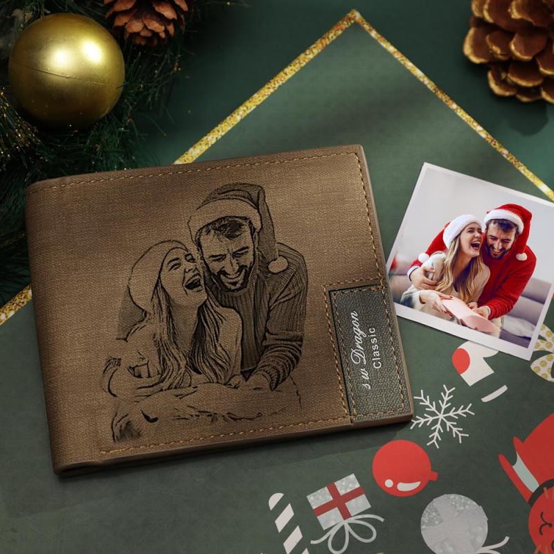 Benutzerdefinierte Foto Gravierte Kurze Brieftasche Braun | Weihnachtsgeschenke