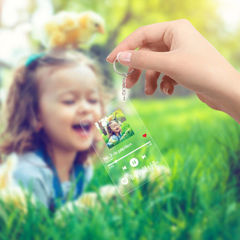 Benutzerdefinierte scannbare Spotify Song Code Acryl Schlüsselbund Kinder Foto Schlüsselring