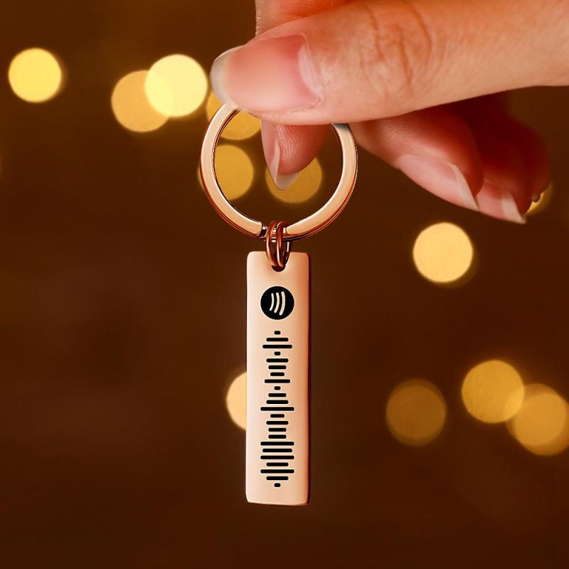 Benutzerdefinierte Scannbare Spotify Code Musik Schlüsselbund Gravierte Song Schlüsselring Roségold