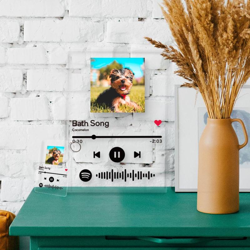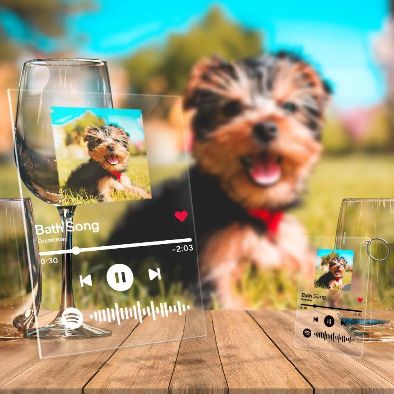 Benutzerdefinierte Spotify Code Glas Haustier Foto dekorative Plakette und Schlüsselbund Set