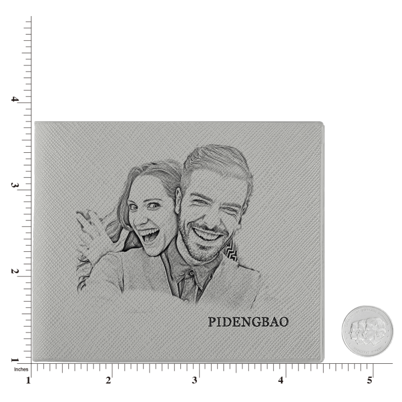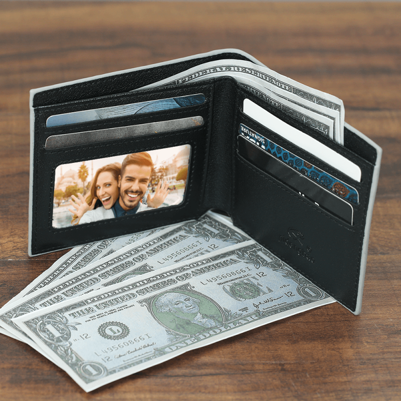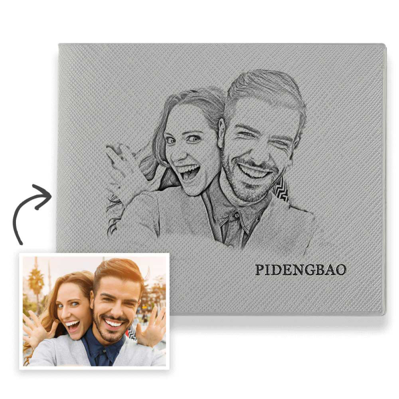 Herren Kurzer Stil Kundenspezifische Foto Geldbörse - Grau Leder