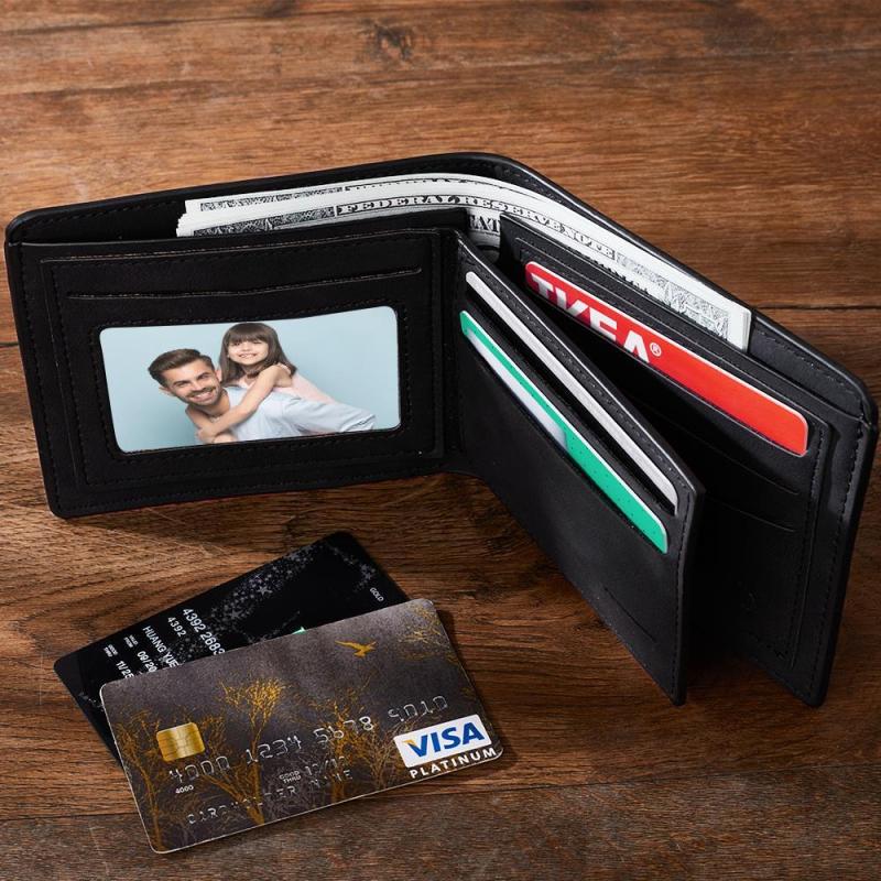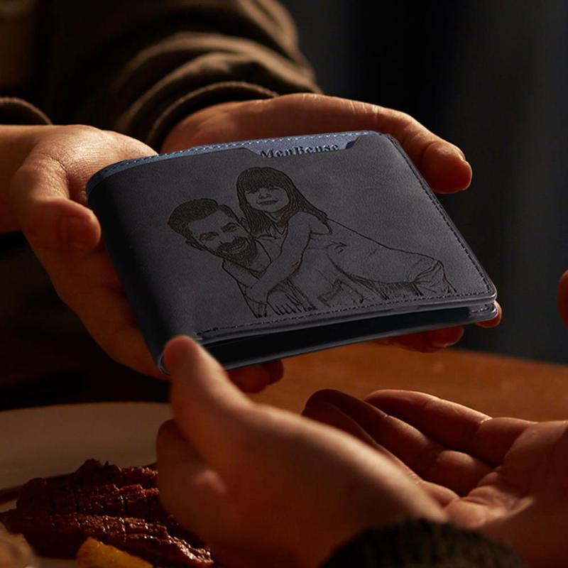 Vatertagsgeschenk Herren Benutzerdefinierte Foto Gravierte Brieftasche Kurze Geldbörse Dunkelblau