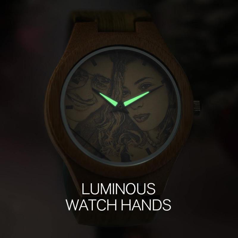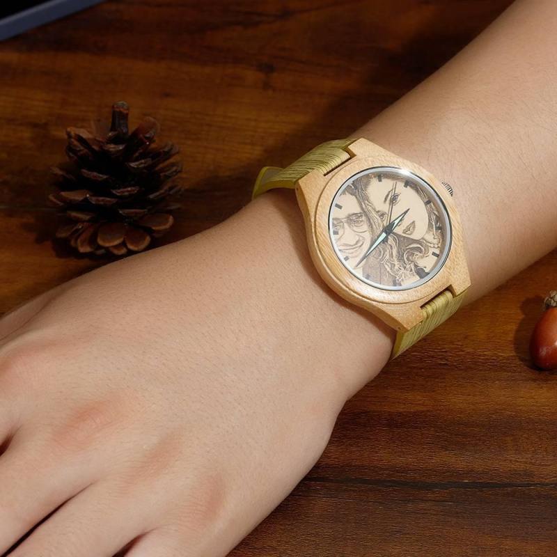 Herrenuhr Aus Bambus Mit Gravur, Fotouhr Aus Holz, 45 Mm