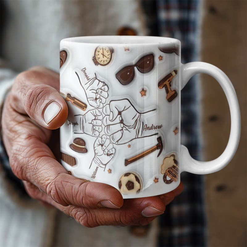 Vatertagsgeschenk Personalisierte 1-6 Kindernamen Benutzerdefinierter 3d-becher Mit Aufgeblasenem Effekt Für Papa Oder Opa