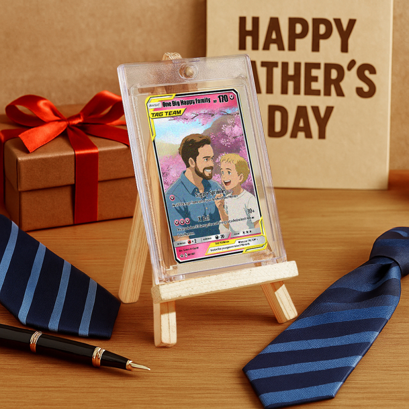 Ausverkauf! Personalisiertes Poke Tag Team Kartenportrait - Personalisiertes Anime Poster - Vatertagsgeschenk - Lustiger Cartoon K5